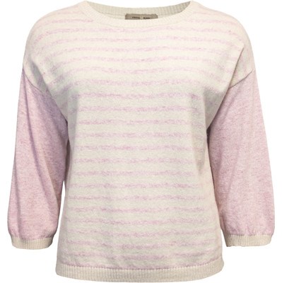 Blød strikbluse i melerede farver i sand og rosa. Modellen har rund hals, lette ærmer i 3/4 længde, derudover ribkanter som giver et afslappet men feminint udtryk. Perfekt til hverdagsbrug med et strejf af farve.