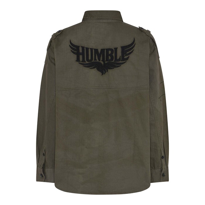 Super cool jakke med rå detaljer og Humble broderi på ryggen.