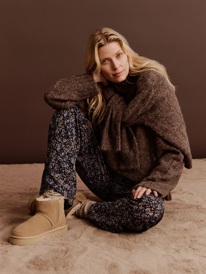 Lækre "bamsestøvler" i ren ruskind, foeret med den blødeste lækre varme lammeuld. Sålen er fantastisk med memory foam som giver en ekstra blød fodseng. Støvlerne er moderne men også klassiske og tidsløse i deres design.